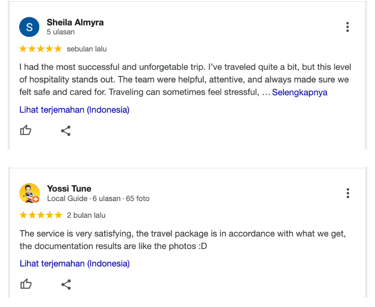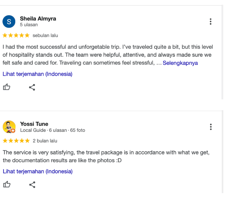Tinggal Jalan is a trusted travel agency in Indonesia with a 5-star rating on Google, loved by both local and international travelers.