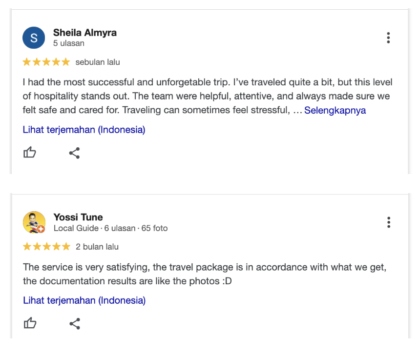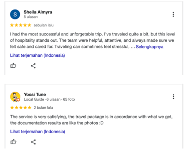 Tinggal Jalan is a trusted travel agency in Indonesia with a 5-star rating on Google, loved by both local and international travelers.